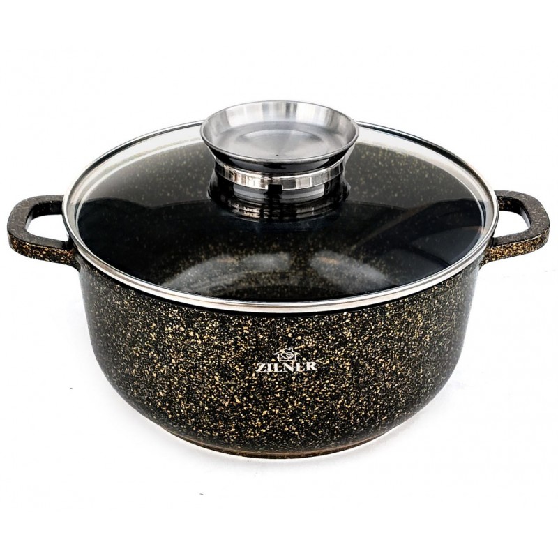 Granitowa / marmurowa powłoka sprawia, że naczynia są wyjątkowo odporne na wszelkie zarysowania i trwałe. Ten typ garnków i patelni pozwala również na smażenie przy użyciu minimalnej ilości tłuszczu, ponieważ naczynie rozgrzewa się podobnie do kamienia i oddaje ciepło całą swą powierzchnią.