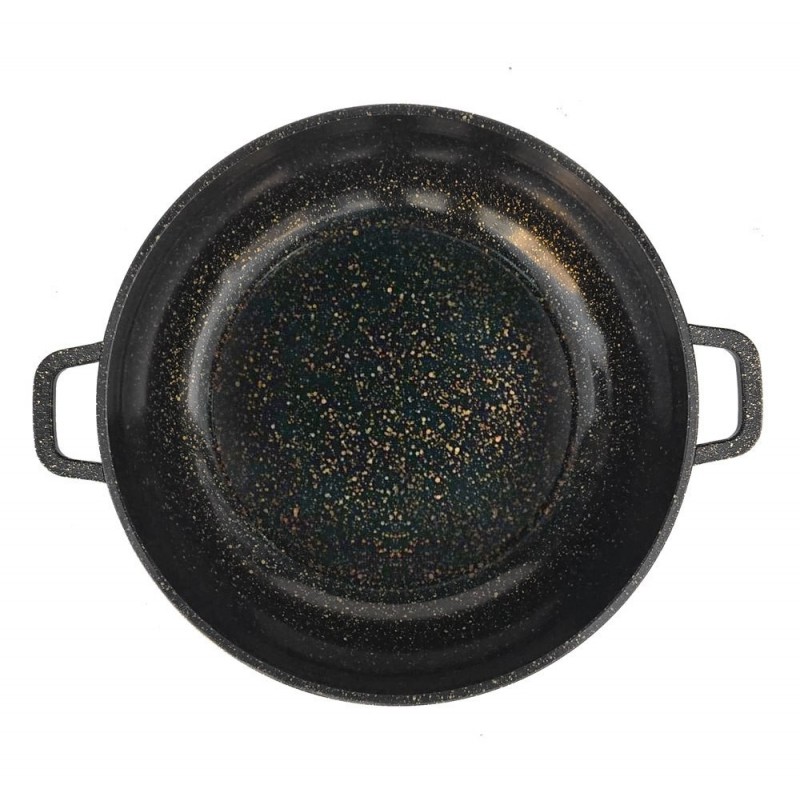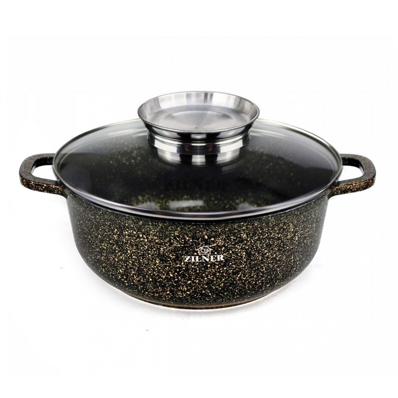 Granitowa / marmurowa powłoka sprawia, że naczynia są wyjątkowo odporne na wszelkie zarysowania i trwałe. Ten typ garnków i patelni pozwala również na smażenie przy użyciu minimalnej ilości tłuszczu, ponieważ naczynie rozgrzewa się podobnie do kamienia i oddaje ciepło całą swą powierzchnią.
