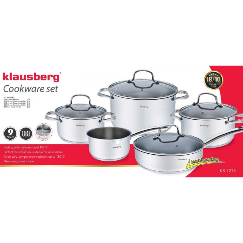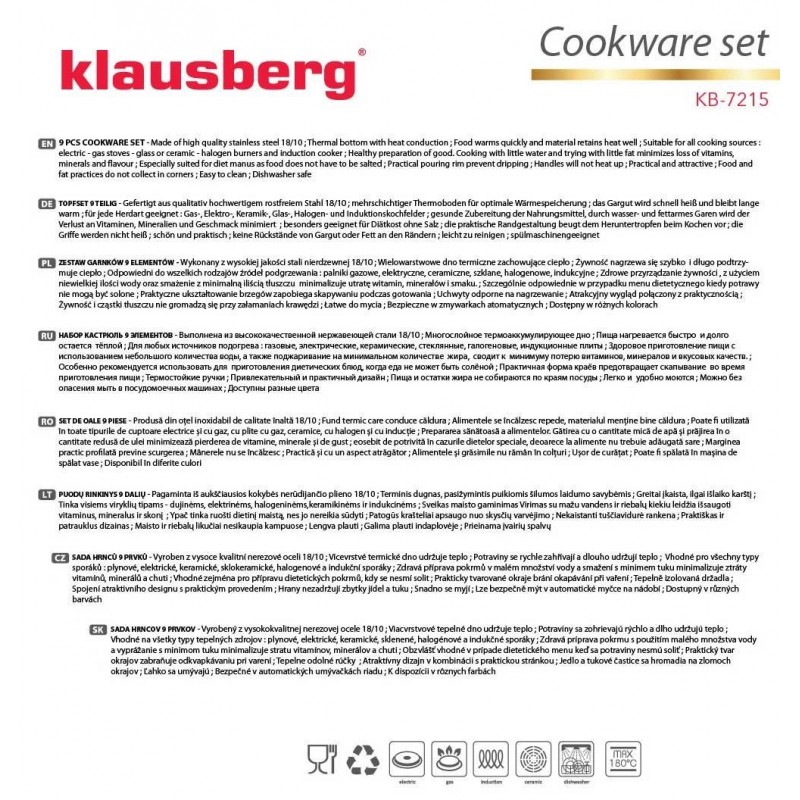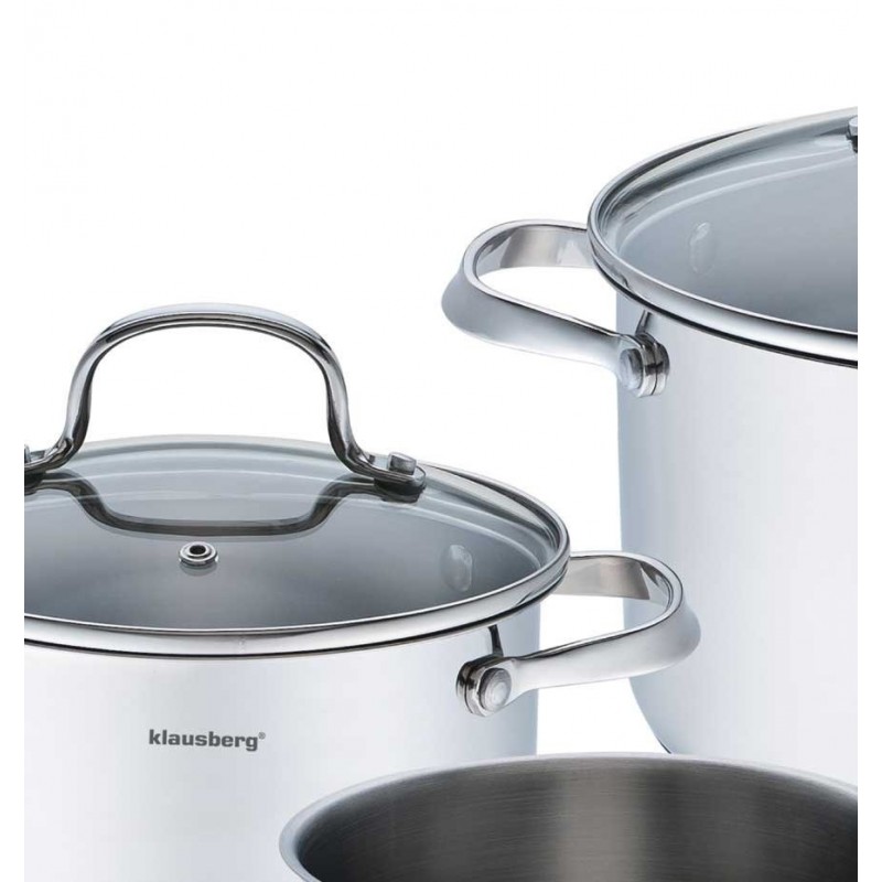 Zastosowanie wysokogatunkowej stali gwarantuje, że na powierzchni garnków nie będą powstawać plamy i odbarwienia. Stal szlachetna jest łatwa w czyszczeniu oraz posiada właściwości bakteriobójcze. W komplecie patelnia z trwałą i odporną na zarysowania powłoką granitową firmy Xylan.