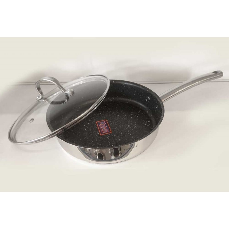 Patelnia z powłoką marmurową oraz z pokrywką: Ø24 x 6 cm 2,3L