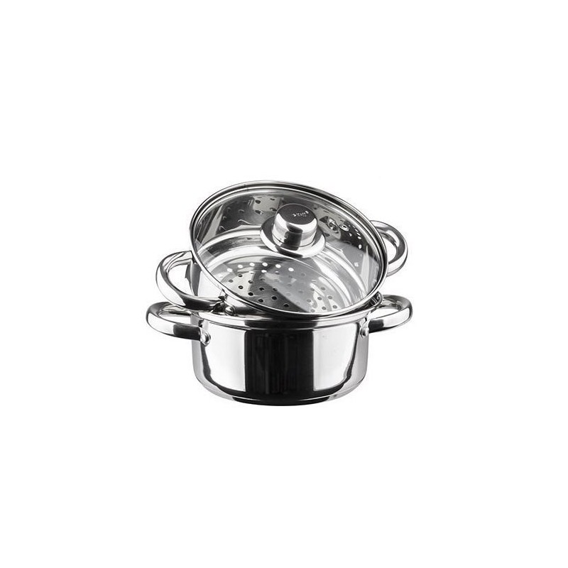 ZESTAW DO GOTOWANIA NA PARZE Z PAROWNIKIEM składający się z 3 ELEMENTÓW, wykonany z wysokiej jakości polerowanej na wysoki połysk stali nierdzewnej 18/10 z podwójnym akutermicznym dnem. Zastosowany materiał jest nie tyko najlepszy z możliwych, ale również świetnie się prezentuje i jest wyjątkowo bezproblemowy w czyszczeniu.