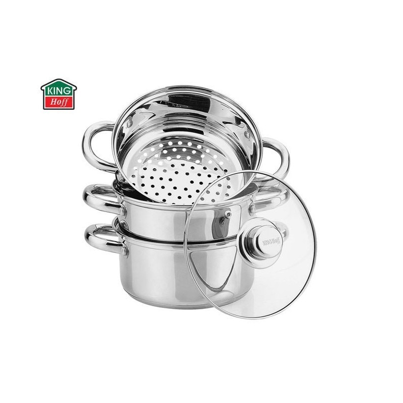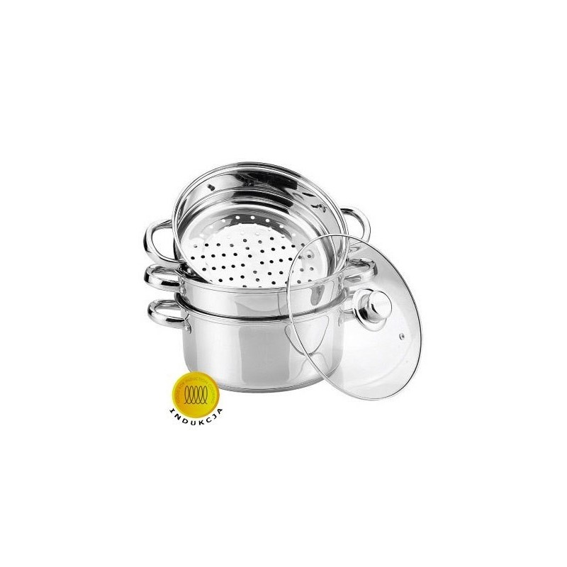 ZESTAW DO GOTOWANIA NA PARZE składający się z 4 elementów, wykonany z wysokiej jakości polerowanej na wysoki połysk stali nierdzewnej 18/10 z akutermicznym dnem. Zastosowany materiał jest nie tyko najlepszy z możliwych, ale również świetnie się prezentuje i jest wyjątkowo bezproblemowy w czyszczeniu.