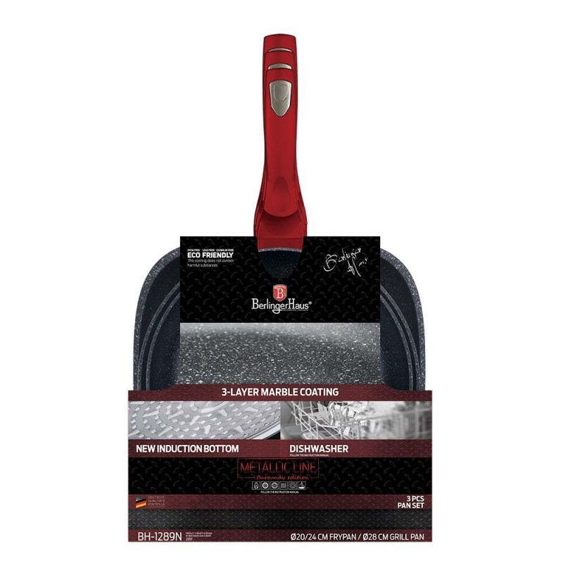 Zestaw 3 patelni granitowych Ø20cm/Ø24cm/28cm BERLINGER HAUS z serii METALLIC LINE - BURGUNDY.