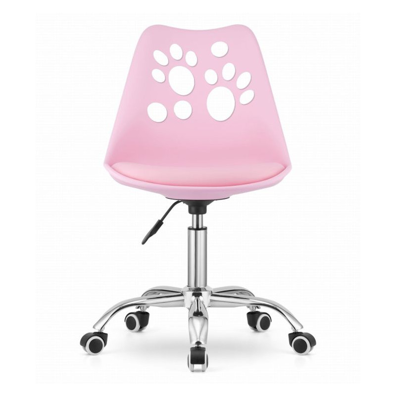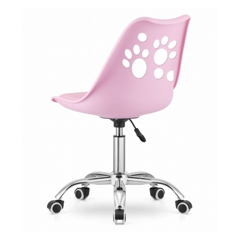 Obrotowe krzesło biurowe jest świetną alternatywą dla foteli, które zajmują więcej miejsca. Wysokie oparcie wykonane jest z wytrzymałego polipropylenu. Za wygodę krzesła odpowiada miękka czarna poduszka wykonana z eko-skóry. Wysokość krzesła można dostosować do własnych potrzeb, dzięki pneumatycznemu podnośnikowi, a kauczukowe kółka zapewnią ciche przesuwanie bez obaw o porysowaniu podłogi.
