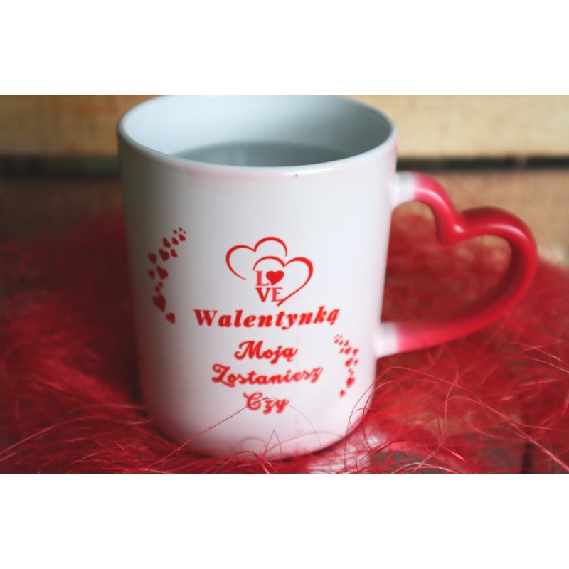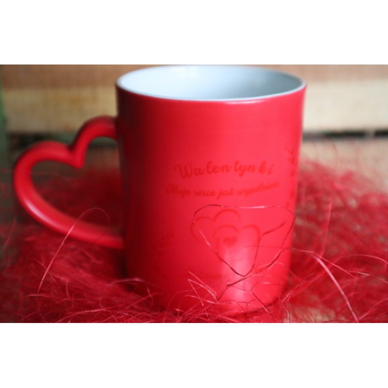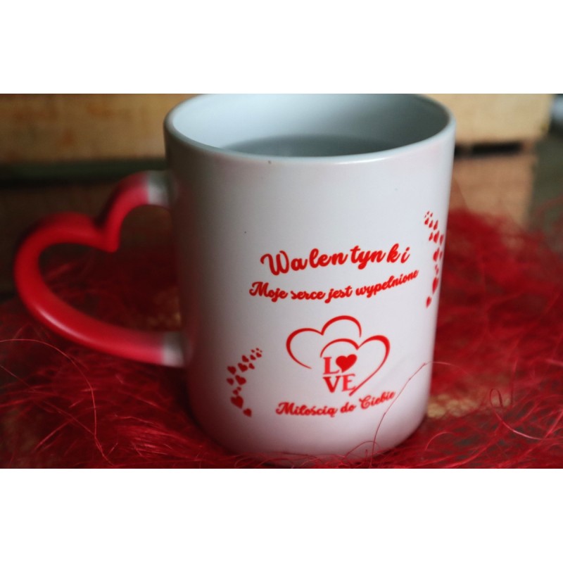 Magiczny półmatowy kubek zmieniający kolor z uchwytem w kształcie serca