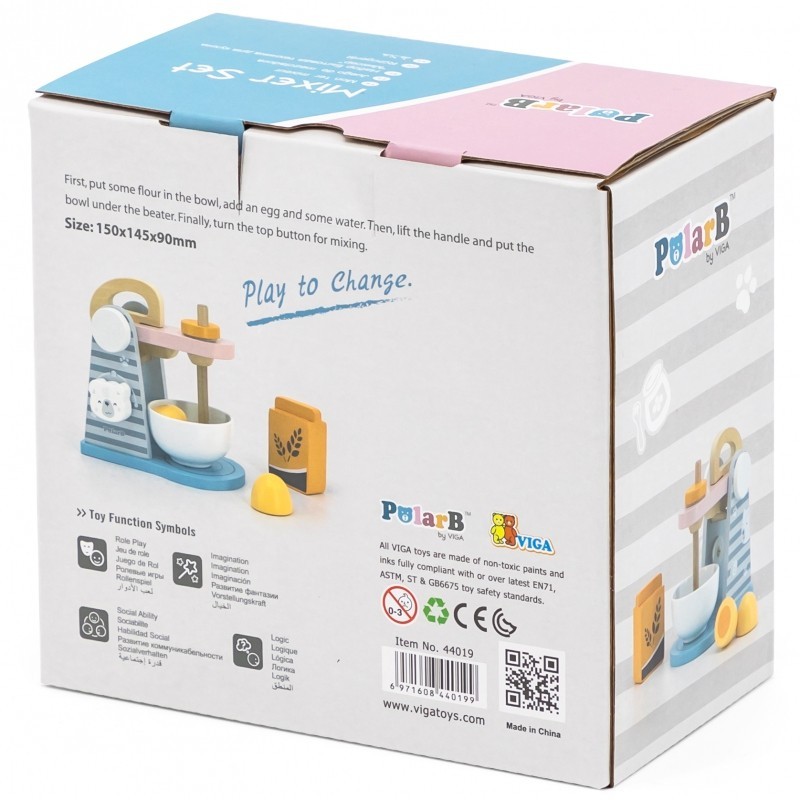 Różowo-szary mikser będzie doskonałym dodatkiem do kuchni lub kącika tematycznego w przedszkolu oraz pozwoli dziecku w domu na zabawę w doskonalenie umiejętności kucharskich. Drewniana zabawka pozwoli na odgrywanie ról wpłynie także pozytywnie na integrację z innymi dziećmi poprzez wspólną zabawę.