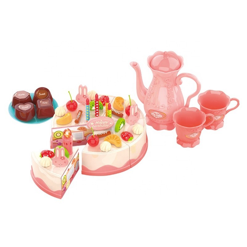 Zestaw do herbaty z tortem od renomowanej marki Woopie to idealna propozycja na spotkania z przyjaciółmi. Zestaw urodzinowy będzie idealnym atrybutem każdej małej gospodyni do zorganizowania niezapomnianego przyjęcia. W zestawie znajdziemy pięknie udekorowany tort, który możemy pokroić na 6 kawałków i poczęstować swoich gości. W skład zestawu wchodzą także inne przekąski, np. czekoladki, ciasteczka itp. Dziecko może dekorować tort według własnych pomysłów, dzięki dołączonych do zestawu świeczek i owoców.