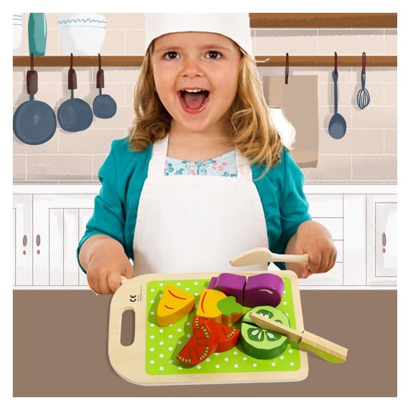 TOOKY TOY Warzywa Deska do Krojenia to wspaniała zabawa dla każdego malucha. Nasz mały szef kuchni dzięki zabawce może stworzyć pyszne dania warzywne. Za pomocą deski do krojenia i drewnianego noża może łatwo i szybko pokroić ogórka, pomidora, marchew czy bakłażan i ofiarować swoim przyjaciołom- poznając w ten sposób znaczenie podziału na pół i całości. Zabawka przeznaczona dla dzieci powyżej 12 miesiąca życia.