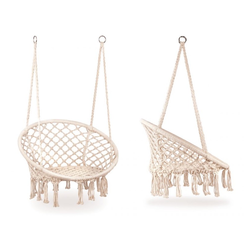 Siedzenie oraz oparcie brazylijskiego krzesła zostało wypełnione plecionym wzorem również z miękkiego bawełnianego sznurka. Takie rozwiązanie powoduje duży komfort podczas odpoczynku oraz odporność na warunki atmosferyczne panujące na zewnątrz. Hamak można zamontować jedno lub dwupunktowo, a jego maksymalne obciążenie to aż 150kg.