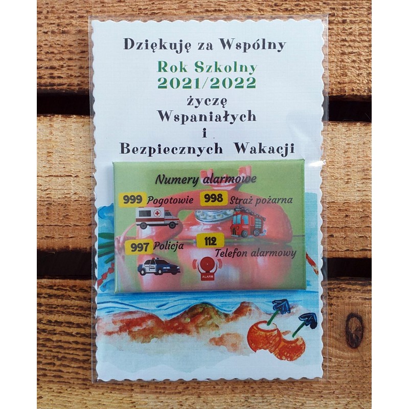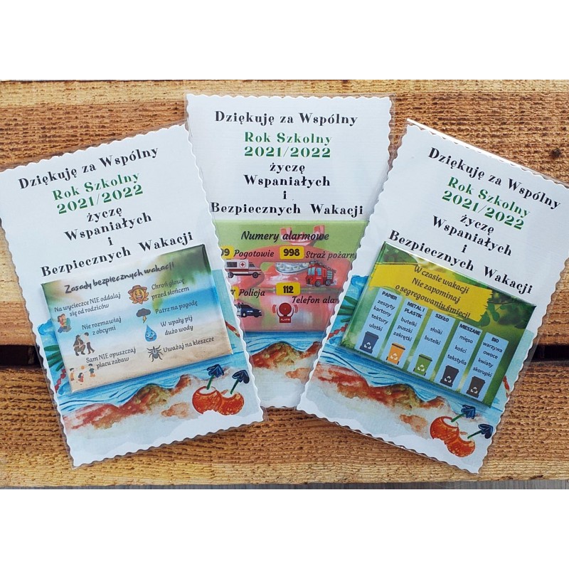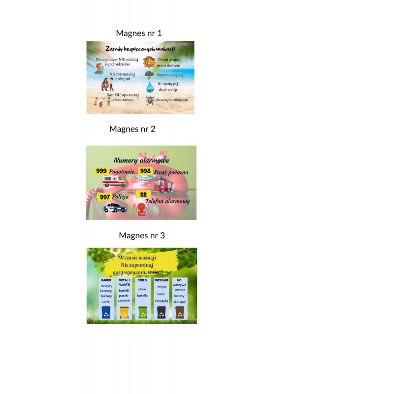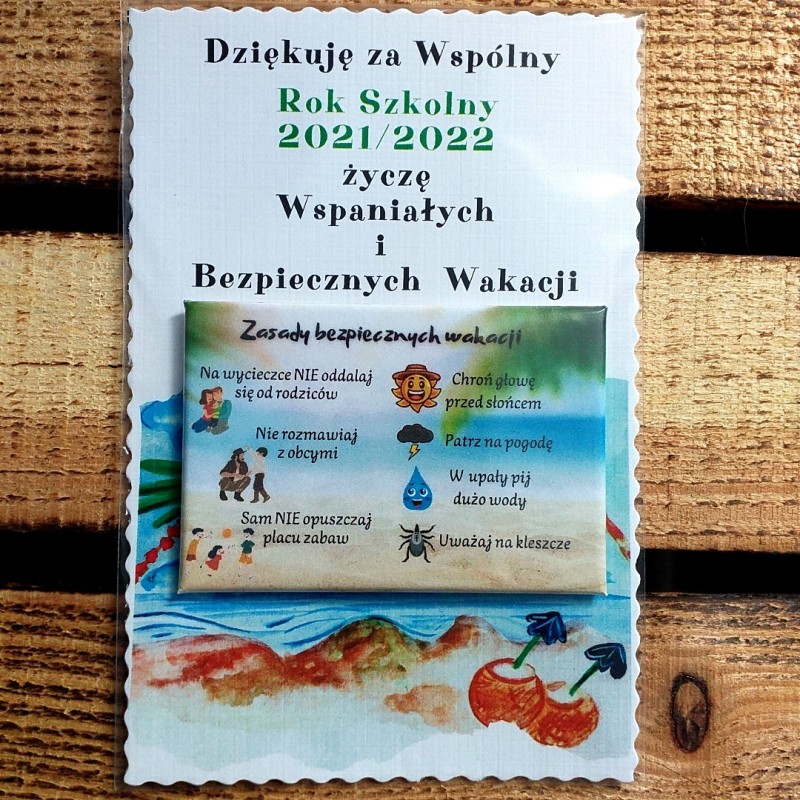 Magnesy z zasadami bezpiecznych wakacji, jako idealna pamiątka na zakończenie roku, która na pewno przyda się podczas letnich wycieczek.