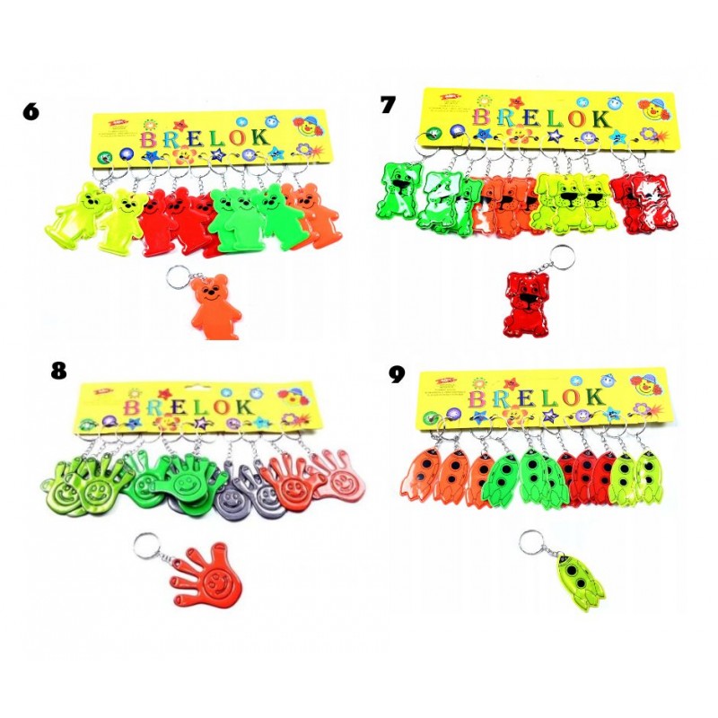 Breloki wysyłamy losowo: piesek, rączka, buźka, miś, koala, autka, rakieta, tygrys, samolot i inne w zależności od dostępnych na magazynie (obecnie już niedostępne są jaszczurka lub buźka w okularach, piłka)