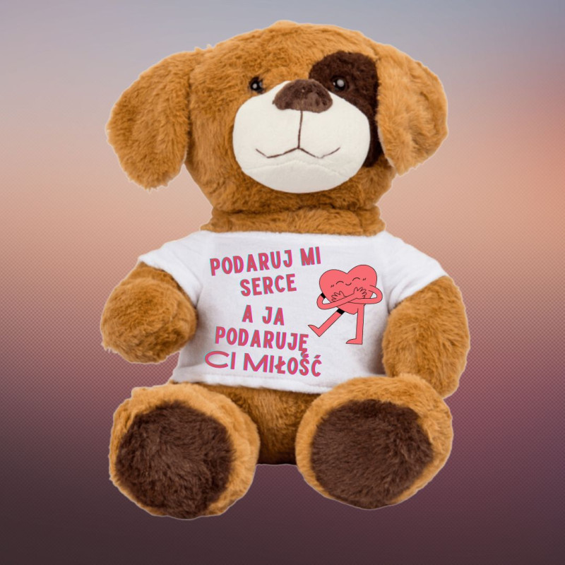 Maskotka Piesek Pablo z koszulką przeznaczoną do nadruku. Nadruk LOGO firmy lub wybór nadruku według zdjęć.