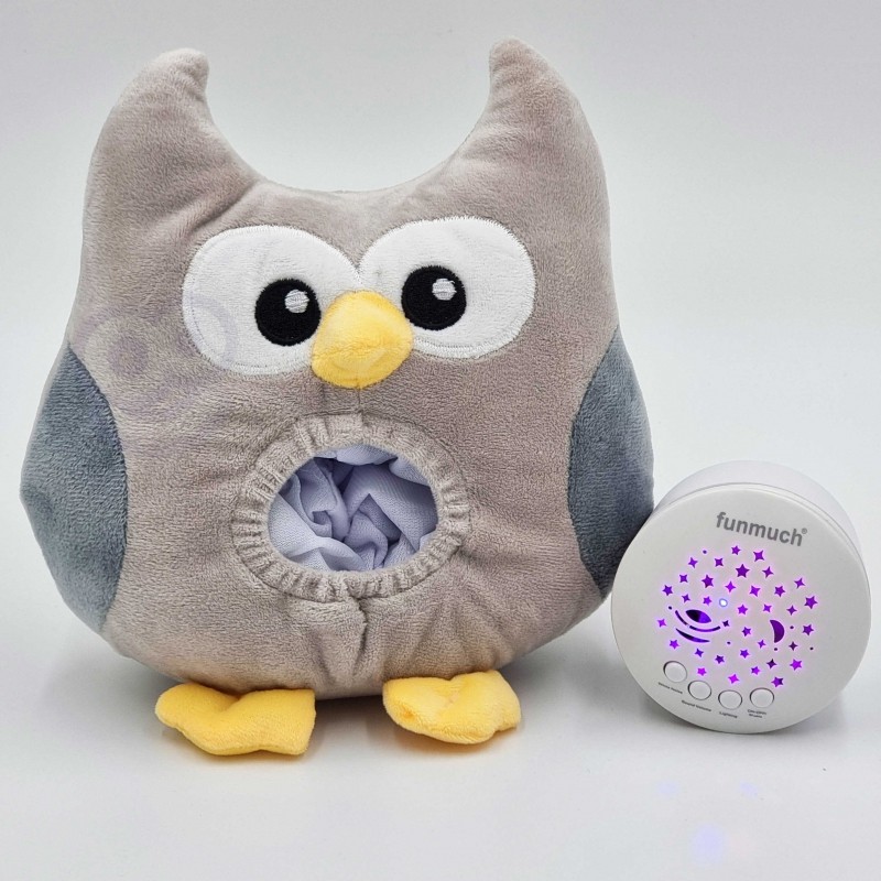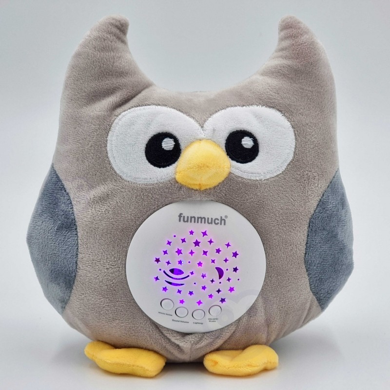 Pluszowy Usypiacz Sówka od marki Woopie, będzie mądrym towarzyszem snu twojego maluszka. Maskotka jest idealna dla niemowląt i starszych dzieci, które nie lubią same zasypiać. Sowa będzie idealnym przyjacielem dobrych snów i wybawcą od potworów z szafy. Przytulak posiada 4 funkcje. Gdy ja włączymy usłyszymy wspaniałe melodie, a brzuszek zacznie mienić się różnymi kolorami. Po naciśnięciu przycisku " White Nose" usłyszymy różne szumy czy bicie serduszka. Zabawka posiada, również aż 10 różnych kołysanek oraz możliwość ustawienia 3 poziomów głośności, aby móc dostosować dźwięk do upodobań maluszka i mieć bezpieczeństwo, że nie obudzi się podczas snu. Zabawka jest przystosowana dla niemowląt, dlatego jest wypełniona miękką watą. Dodatkowo pluszaka bezpiecznie oraz łatwo można czyścić, wyjmując mechanizm i łatwo go potem montując. Daje to możliwość, aby również starsze dziecko mogło używać zabawki jako maskotki bez mechanizmu. Każde dziecko zakocha się w tej sówce!