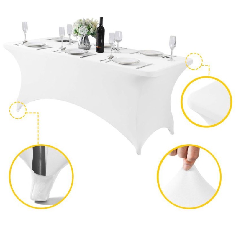 Pokrowiec biały to uniwersalny obrus na stół cateringowy o długości 180 cm, idealny na różnego rodzaju imprezy okolicznościowe. Dzięki swojej elastyczności łatwo dopasowuje się do kształtu stołu, nadając mu elegancki wygląd bez potrzeby prasowania. Wykonany z wytrzymałej, plamoodpornej tkaniny, jest łatwy w czyszczeniu i posiada specjalne kieszenie do mocowania na nogach.