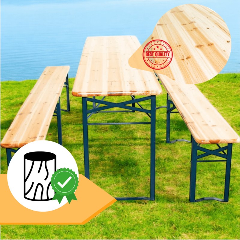 Ławki: 220 x 25 x 46 cm → Wytrzymałość do 150 kg na ławkę!