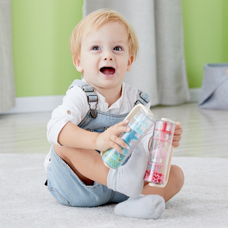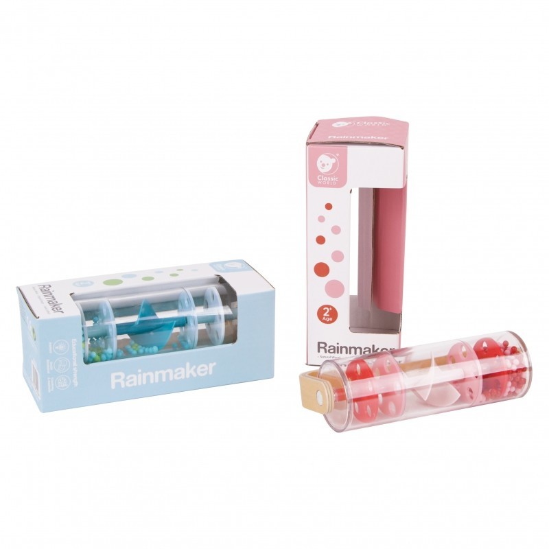 Drewniano-Plastikowa Czerwona Deszczownica z Kuleczkami marki CLASSIC WORLD z przesypującymi się kuleczkami dającymi kojący dźwięk padającego deszczu. Potrząśnij, obróć i obróć, zobacz jak koraliki spadną z góry na dół. Jednym szybkim chwytem możesz przemienić tę zabawkę w grzechotkę, która obraca się o 360 stopni. Świetna propozycja dla rozwoju czuciowego. Idealny rekwizyt do zajęć z rytmiki!