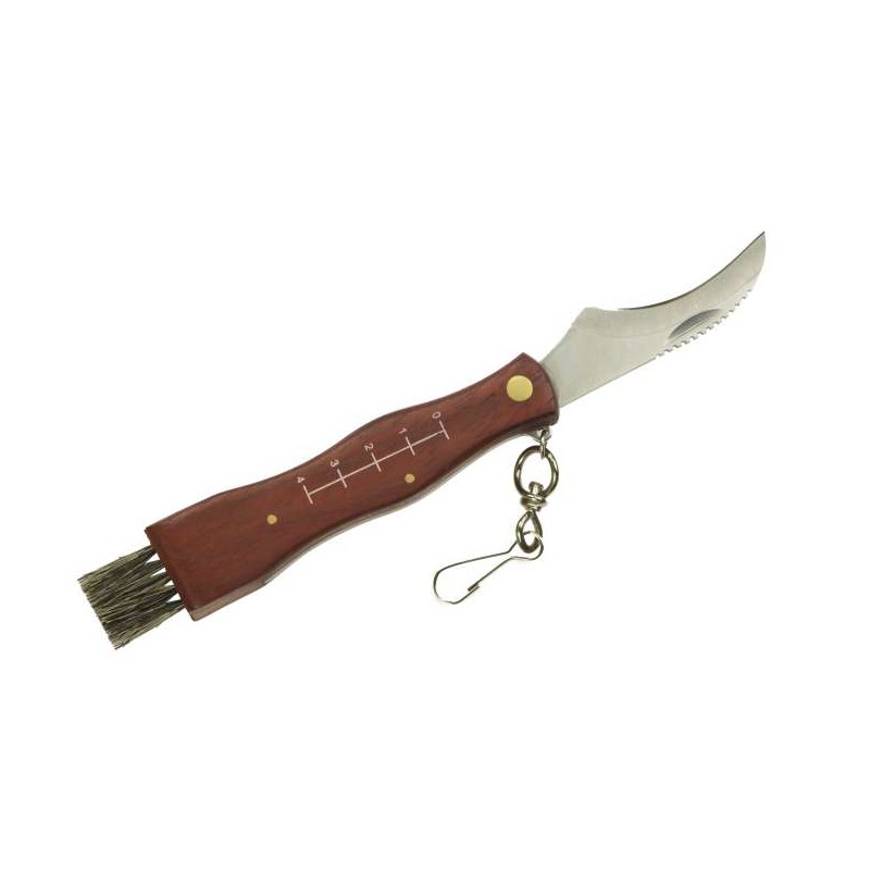 Dodatkowo do noża przymocowano praktyczną szczoteczkę pomagającą w czyszczeniu grzybów.