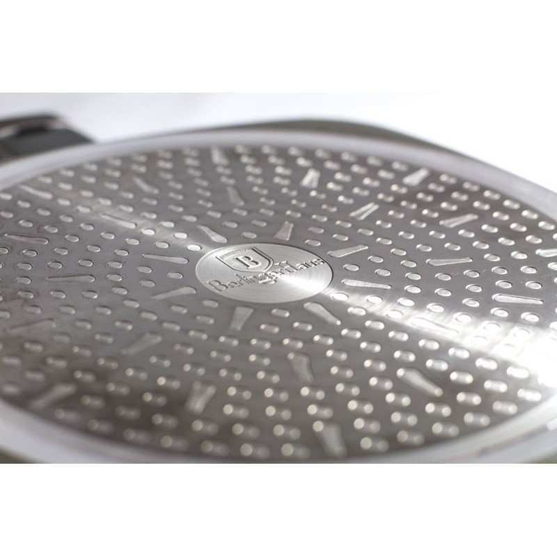 Garnki i akcesoria z serii METALLIC firmy BERLINGER HAUS wykonane są z wysokiej klasy kutego aluminium pokrytego wewnątrz potrójną powłoką granitową (marble) o bardzo wysokim współczynniku twardości. Powłoka zewnętrzna występuje w kilku wersjach kolorystycznych o charakterystycznym metalicznym połysku. Te atrakcyjne i modne naczynia wyposażone są standardowo w uchwyty typu SOFT TOUCH (silikon handle). Przystosowane do wszystkich rodzajów kuchenek: gazowa, elektryczna, ceramiczna, halogenowa, indukcyjna. System TURBO INDUCTION (bardzo szybko nagrzewają się) pozwala zaoszczędzić nawet 35% energii.