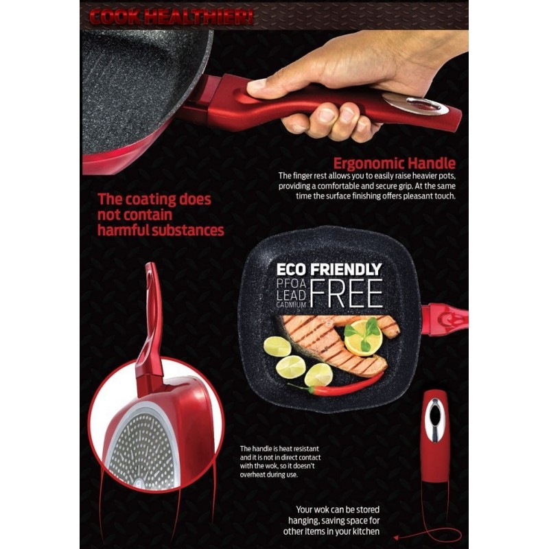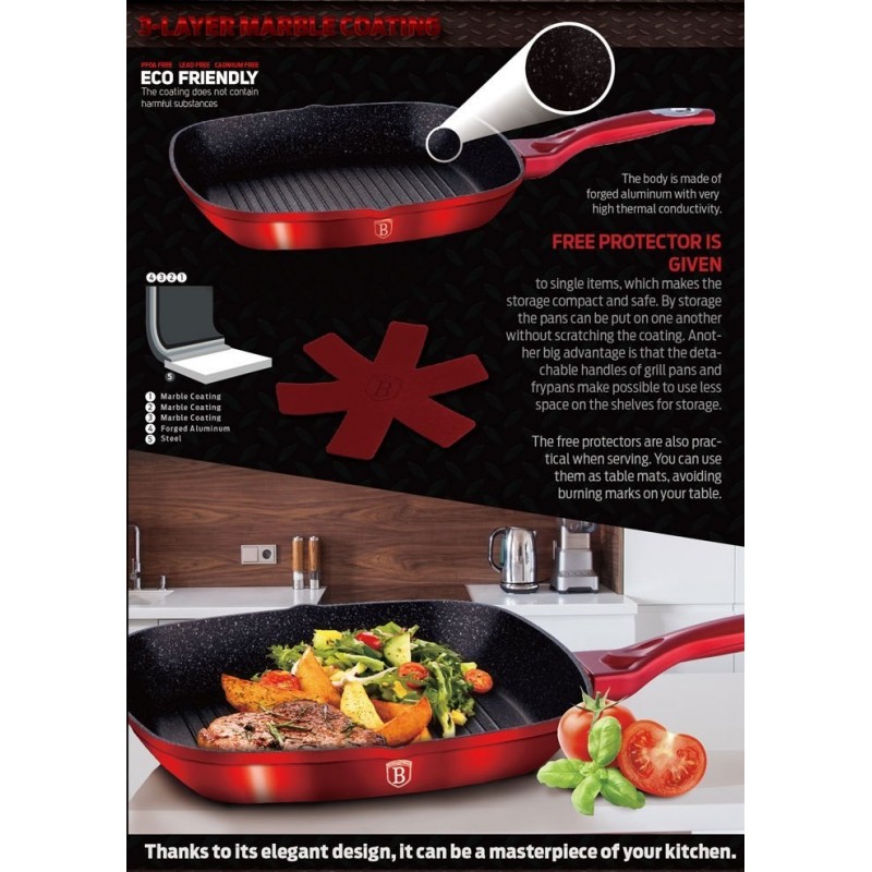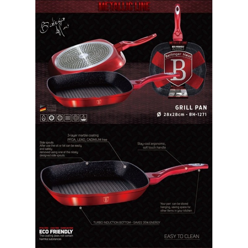 Patelnia grillowa granitowa 28 x 28cm BERLINGER HAUS z serii METALLIC LINE - BURGUNDY .