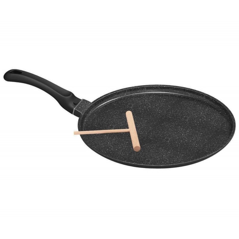 Patelnia do naleśników O26 cm firmy KINGHOFF. Wysoka temperatura to dla patelni nie problem! Materiał z którego wyprodukowano naczynie równomiernie rozprowadza ciepło do niej dostarczane. Dzięki powłoce nieprzywierającej, nie doświadczą Państwo problemu z przyklejaniem i przypalaniem się produktów. Patelnię można ją myć w zmywarkach.