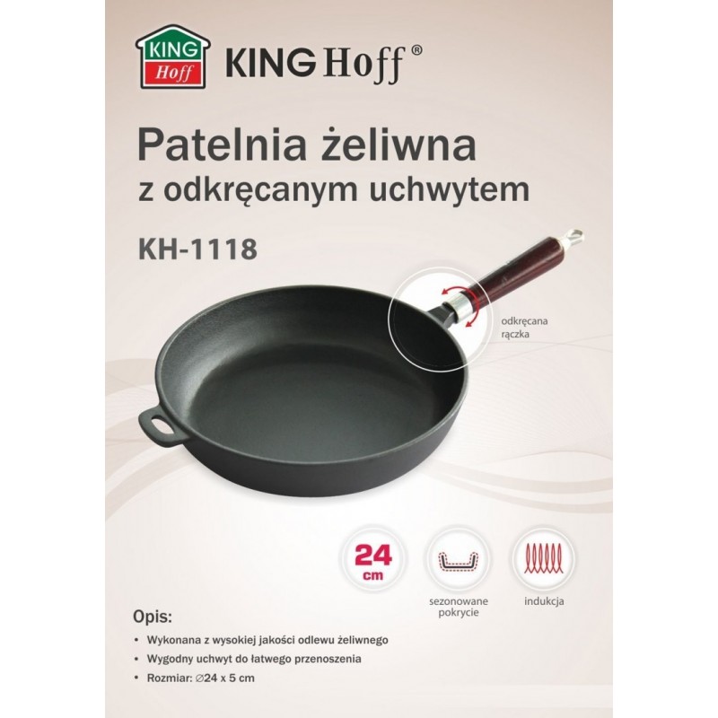 Bardzo ciężka PATELNIA ŻELIWNA Ø24cm z odkręcaną rączką firmy KINGHOFF