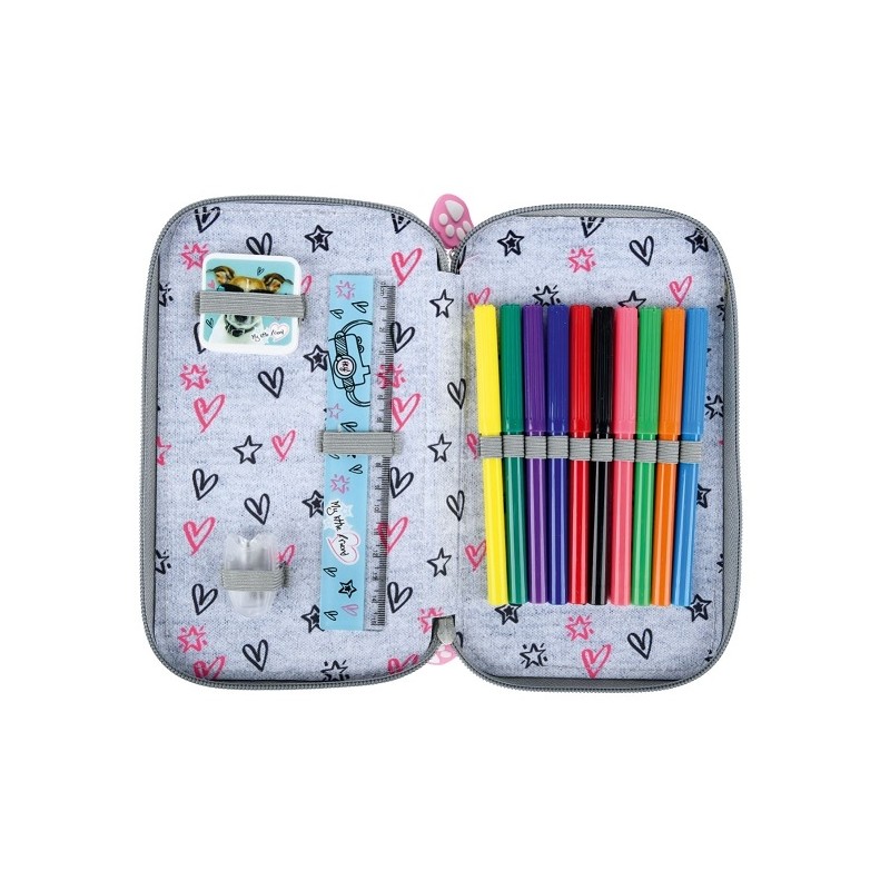 Piórnik jest pojemny - zmieści niezbędne akcesoria szkolne, a dzięki dwóm poziomom jest także poręczny.