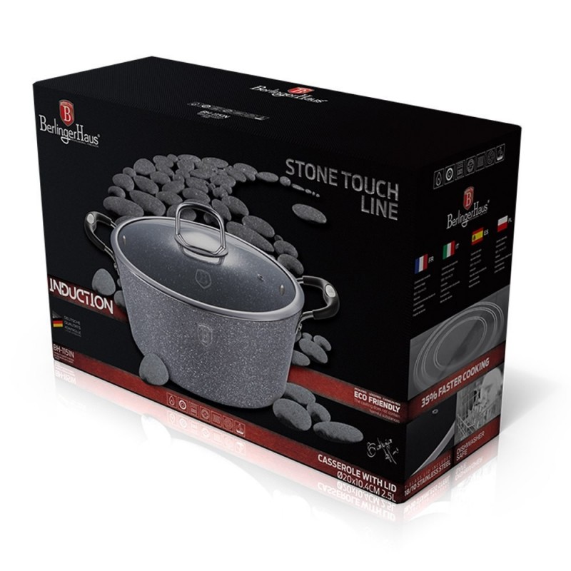 Garnek 2.7L / Ø20cm Berlinger Haus z serii STONE TOUCH z powłoką granitową. w kolorze szarym.