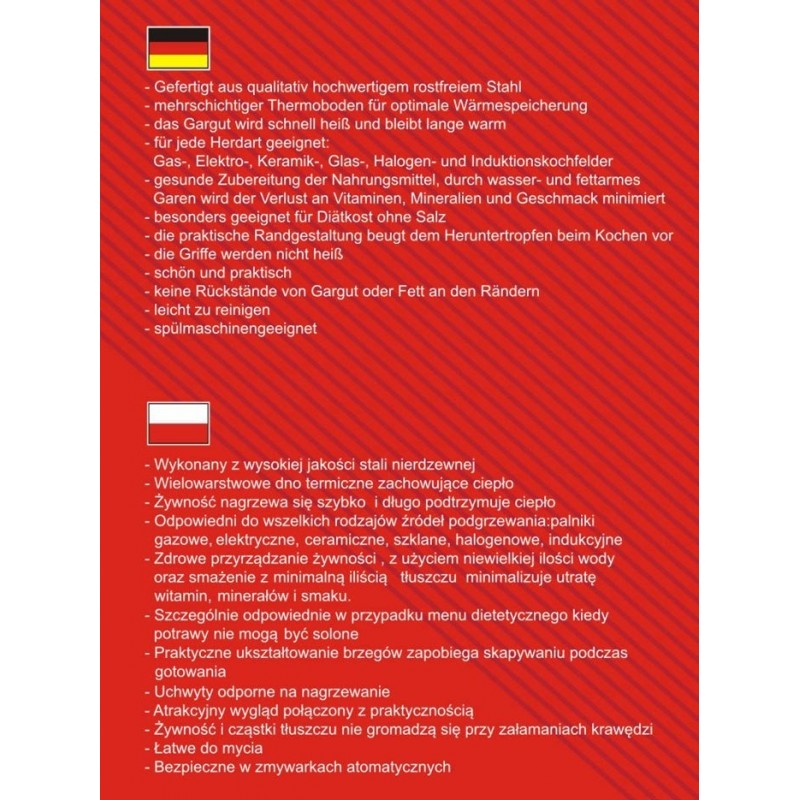 Można używać na wszystkich rodzajach kuchni oraz w piekarniku.