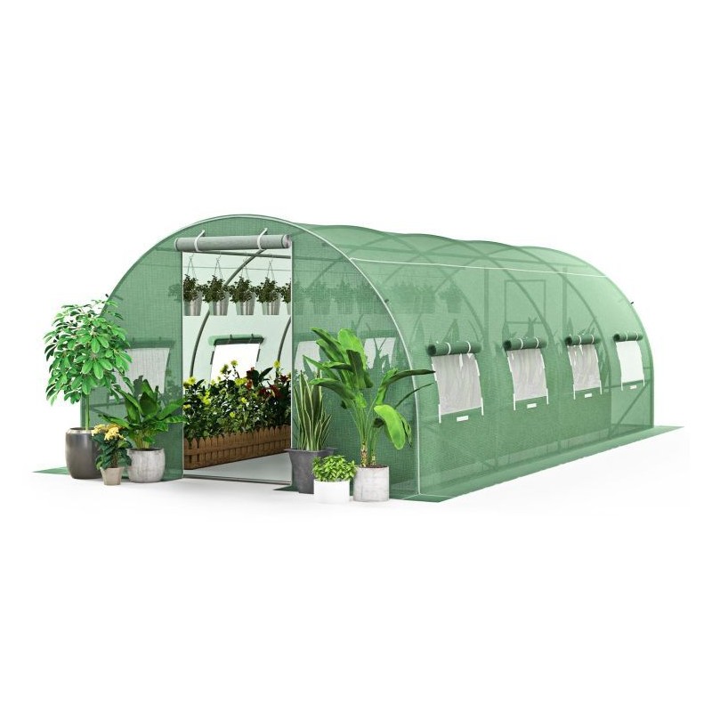Wielosezonowy tunel ogrodowy foliowy o wymiarach 4,5x2x2m to idealne rozwiązanie dla każdego ogrodu lub działki. Jest doskonały do uprawy warzyw, owoców, czy kwiatów, zapewniając optymalne warunki dla ich wzrostu i rozwoju. Konstrukcja szklarni wykonana jest z obustronnie galwanizowanych stalowych profili o wymiarach Φ24x0.6mm 24x0.5/19x0.5mm, co gwarantuje jej stabilność oraz odporność na korozję. Pokrycie stanowi przezroczysta, warstwowa folia PE o gramaturze 140g/m², wzmocniona filtrem UV6, która chroni rośliny przed szkodliwym promieniowaniem słonecznym i izoluje termicznie. Szklarnia wyposażona jest w sześć zamykanych na rzep okien z moskitierami, co zapewnia doskonałą cyrkulację powietrza i ochronę przed owadami. Szerokie wejście z zamkiem błyskawicznym ułatwia dostęp do wnętrza.