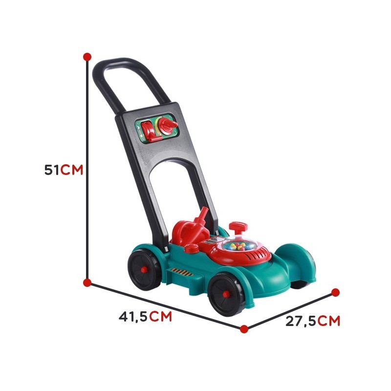 Udana zabawa na świeżym powietrzu może być jeszcze bardziej ciekawa i atrakcyjna, dzięki zabawkowej kosiarce. Dziecko, aby włączyć kosiarkę musi pociągnąć żyłkę do naciągania, która wydaje charakterystyczny warkoczący odgłos. Zabawka nie tylko nauczy dziecko, jak dbać o trawnik, ale rozweseli najmłodszych i wywoła szczery uśmiech dzięki kolorowym kuleczką, które wesoło brykają podczas jazdy. Kosiarka posiada koła, które z łatwością będą pokonywać wyznaczoną przez dziecko trasę. Idealny zestaw do naśladowania swojego rodzica!