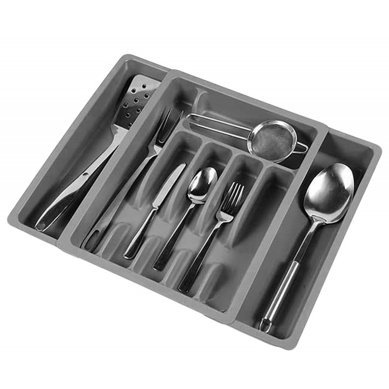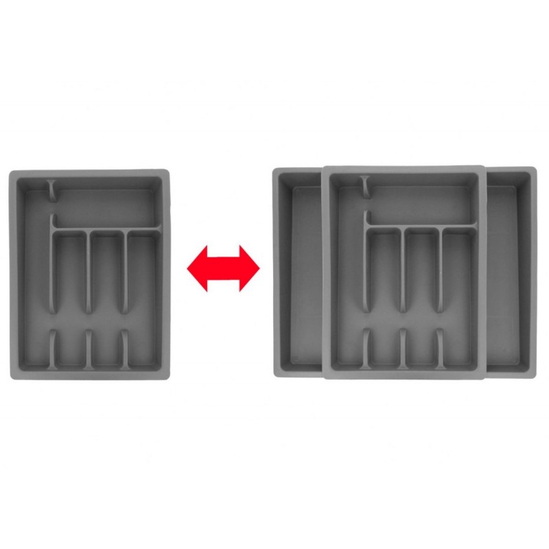 Wkład rozsuwany na sztućce do szuflady BRUNBESTE. Dzięki regulowanemu płynnie rozmiarowi można dopasować go do szuflad o szerokości od 28,5 do 47cm. Pozwoli na uporządkowanie sztućców oraz przyborów kuchennych w szufladach.