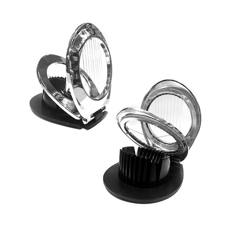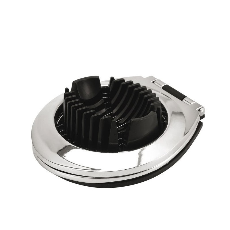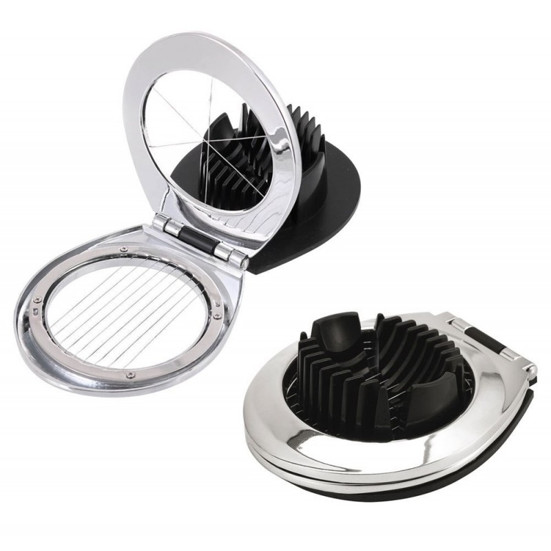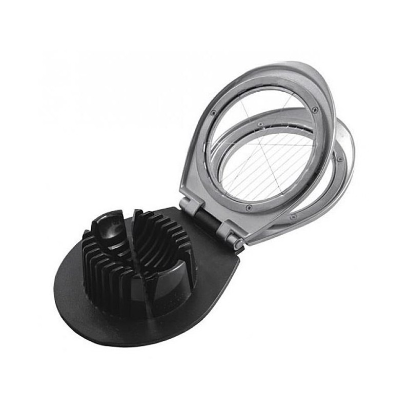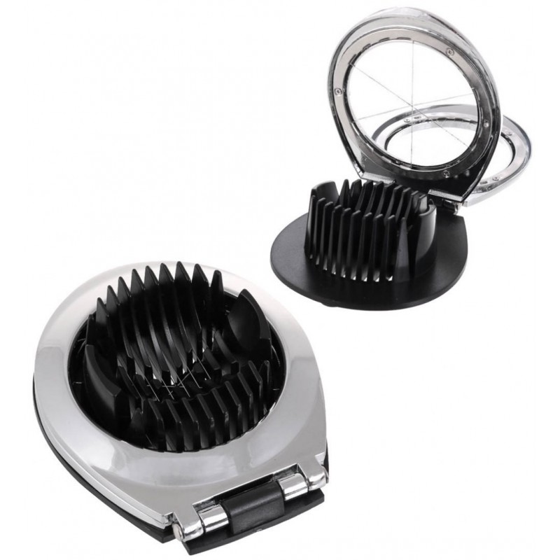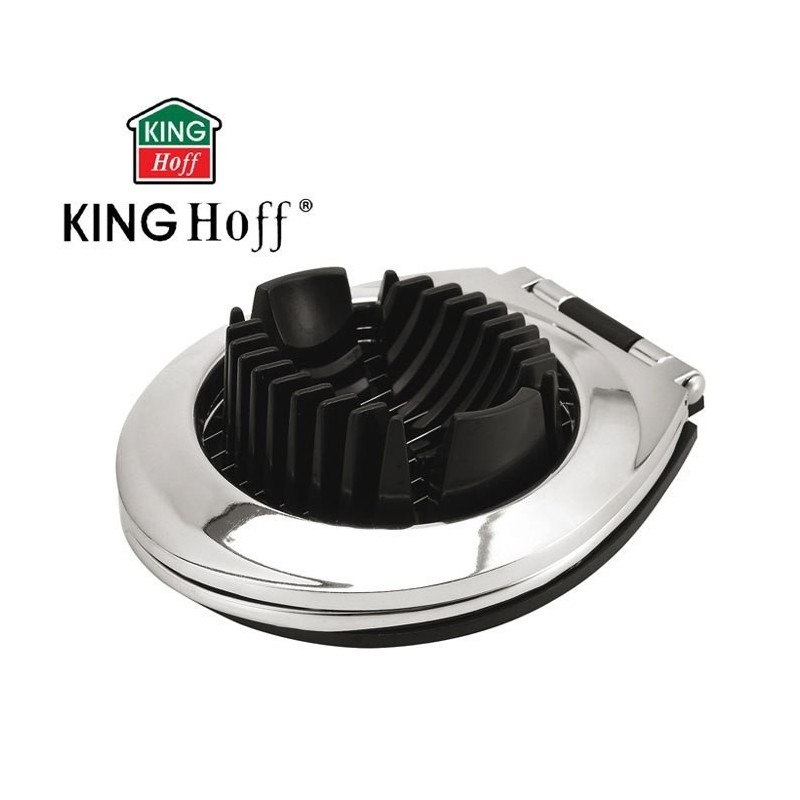 Krajarka do jajek dwufunkcyjna firmy KINGHOFF. Umożliwia krojenie jajka na twardo na 2 sposoby, a także mozzarelli, gotowanych warzyw, pieczarek. Dzięki tej krajarce w szybki i wygodny sposób można przygotować jajko na kanapki czy do sałatki. Posiada dwie funkcje, które umożliwiają pokrojenie jajka na paski lub na ćwiartki. Krajalnica wykonana jest z tworzywa oraz wysokiej jakości stali nierdzewnej, dzięki czemu jest twarda, wytrzymała i odporna na uszkodzenia. Po użyciu krajalnica do jajek swobodnie może być wyczyszczona w zmywarce.