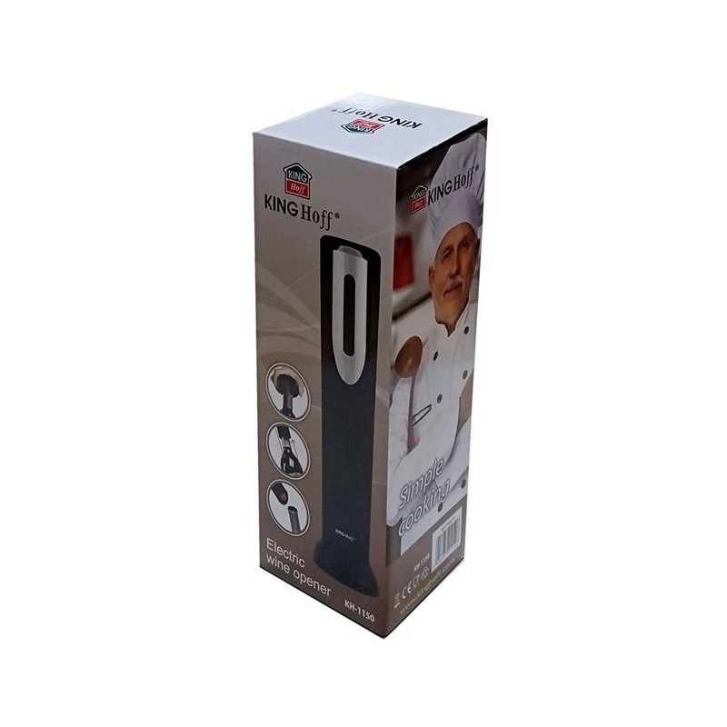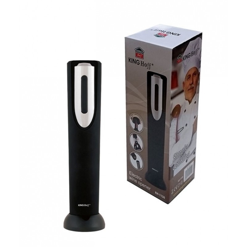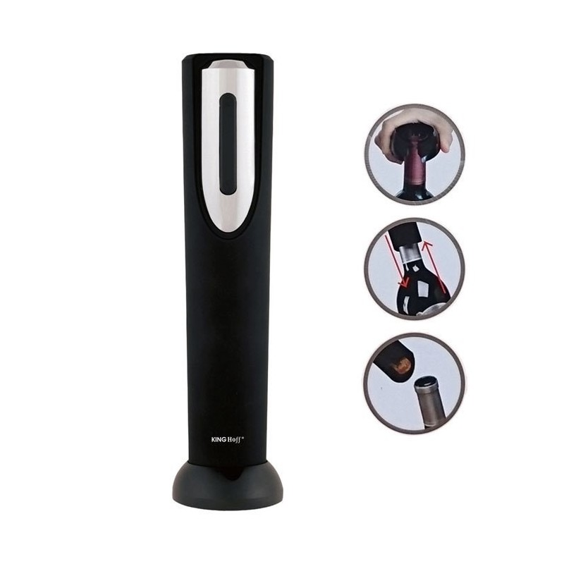 Korkociąg elektryczny do wina KINGHOFF którym bez problemu otworzysz każdą zakorkowaną butelkę. Zasilany na baterie i bezprzewodowy, co pozwala Ci swobodnie z niego korzystać, bez potrzeby podłączania go do źródła zasilania. Do zestawu dołączony jest również obcinacz do folii