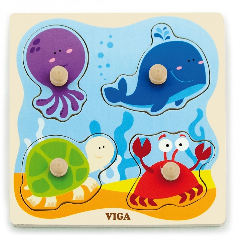 Drewniane Puzzle z pinezkami od Viga dla dzieci od 18 miesiąca życia to idealne rozwiązanie do domu, jak i do przedszkola. Składa się z planszy, oraz 4 elementów tematycznych, które należy do niej zamontować. Na drewnianej podstawce znajdują się wgłębienia, które swoim kształtem odpowiadają kolorowym puzzlom. Całość wykonana została z drewna, pomalowana bezpiecznymi dla dziecka farbami w żywe barwy, które zadowolą każdego użytkownika i dadzą mnóstwo radości z zabawy.