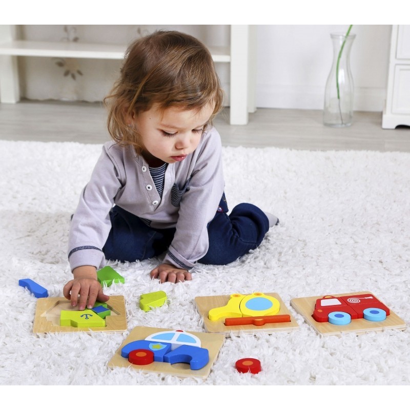 Drewniane Mini Puzzle od renomowanej marki Tooky Toy dla dzieci od 12 miesiąca życia to idealne rozwiązanie do domu, jak i do przedszkola. Układanka składa się z 4 elementów, które razem tworzą helikopter. Na drewnianej podstawce znajduje się wgłębienie, które swoim kształtem odpowiadają kolorowym puzzlom. Całość wykonana została z drewna, pomalowana bezpiecznymi dla dziecka farbami w żywe barwy, które zadowolą każdego użytkownika i dadzą mnóstwo radości z zabawy.