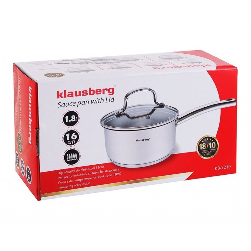 Rondel 1.8L firmy KLAUSBERG z pokrywą szklaną wykonany z najwyższej jakości stali nierdzewnej 18/10. Stal tego typu gwarantuje długą żywotność i odporność na powstawanie plamek i przebarwień.