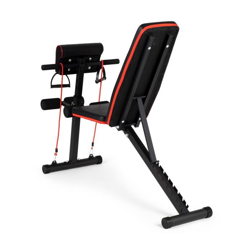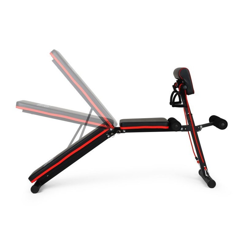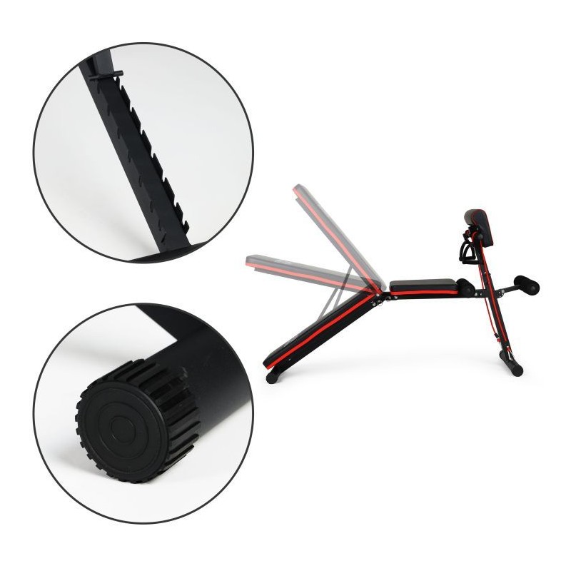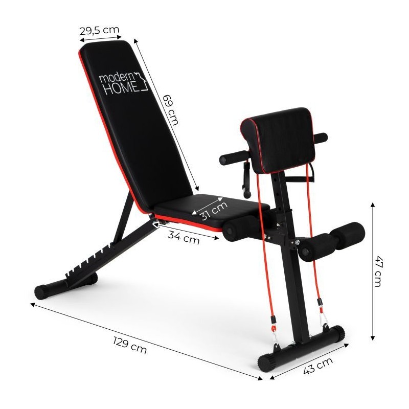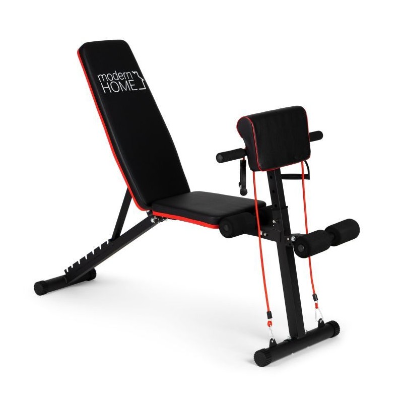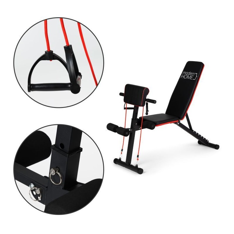 Ławeczka do ćwiczeńl to wszechstronne urządzenie treningowe idealne do domowej siłowni. Posiada 7-stopniową regulację oparcia i 4-stopniową regulację modlitewnika, co pozwala na dostosowanie do różnych ćwiczeń. Konstrukcja została wykonana z metalu malowanego proszkowo co zapewnia trwałość i stabilność ławeczki. Siedzisko i oparcie jest miękkie i wygodne, a zostało pokryte ekoskórą. Ławeczka wyposażona jest w antypoślizgowe stopki oraz blokadę na nogi, co zwiększa bezpieczeństwo użytkowania. Maksymalne obciążenie ławki wynosi 150 kg. Dodatkowo, ławeczka wyposażona jest w ekspandery do rąk, co umożliwia jeszcze większą różnorodność ćwiczeń. Idealna do wzmacniania i modelowania mięśni rąk, ramion, pleców, brzucha oraz do ćwiczeń siłowych.