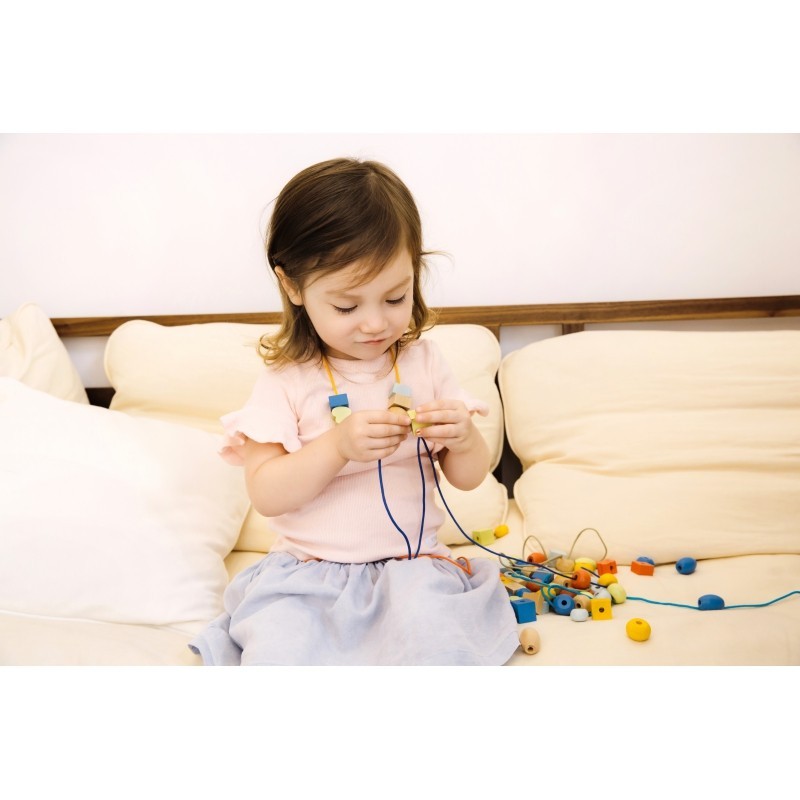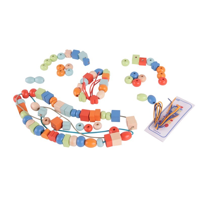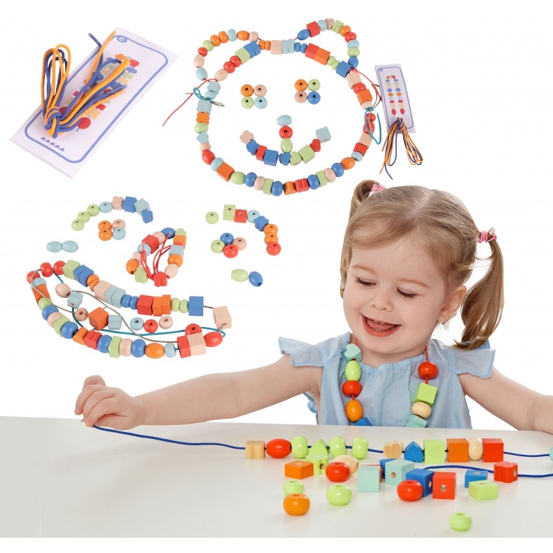 Kolorowy zestaw koralików do nawlekania. W zestawie znajduje się 96 elementów do nawlekania. To zabawka idealnie nadająca się na prezent. Twórz własne wzory! Twoja pociecha może rozwijać jako stylistka biżuterii.