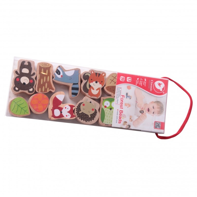 Classic World Koraliki Do Nawlekania Leśne Zwierzęta to idealna zabawka do rozwijania umiejętności motorycznych dziecka. Przeplatanka dla dzieci utrzymana została w motywie świata zwierząt leśnych. Zabawka przeplatanka marki Classic World to klasyczny zestaw drewnianych elementów z dziurkami, przez które dziecko przeplata sznureczek. Jest to świetna zabawa, która rozwija zręczność, oraz wzbudza ciekawość dziecka na temat zwierząt mieszkających w lesie.