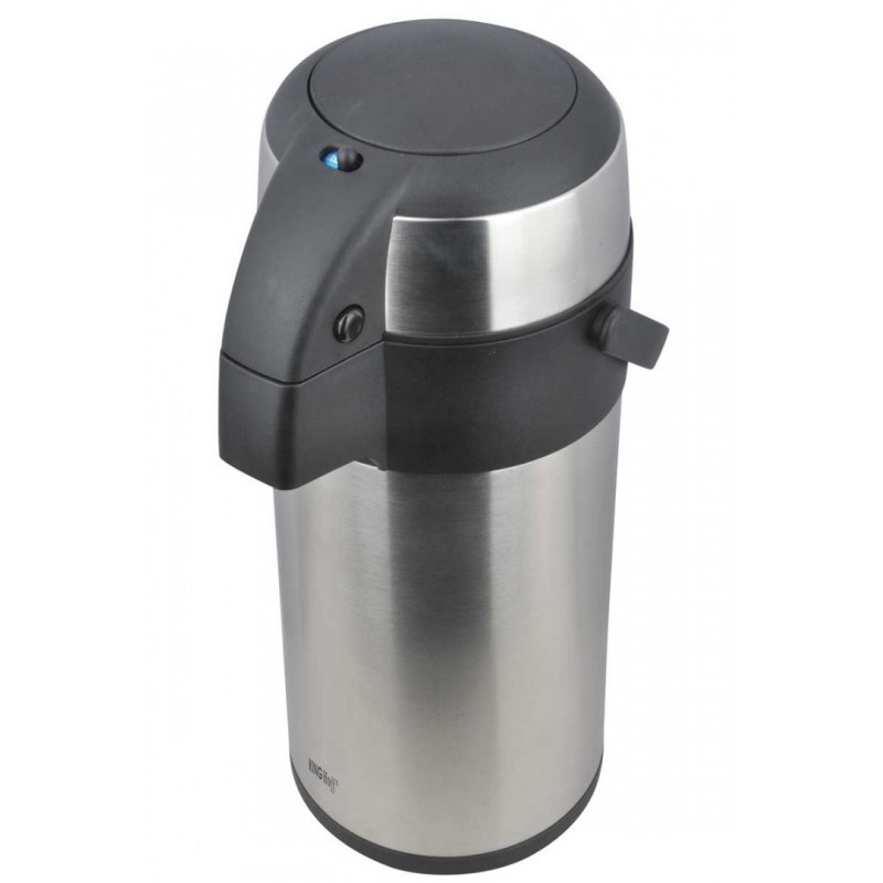 Nalewanie ciśnieniowe za pomocą pompki (dozownika) z termosu stojącego na stole.