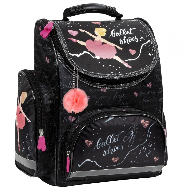 Na klapie głównej komory tornistra znajduje się tańcząca baletnica.