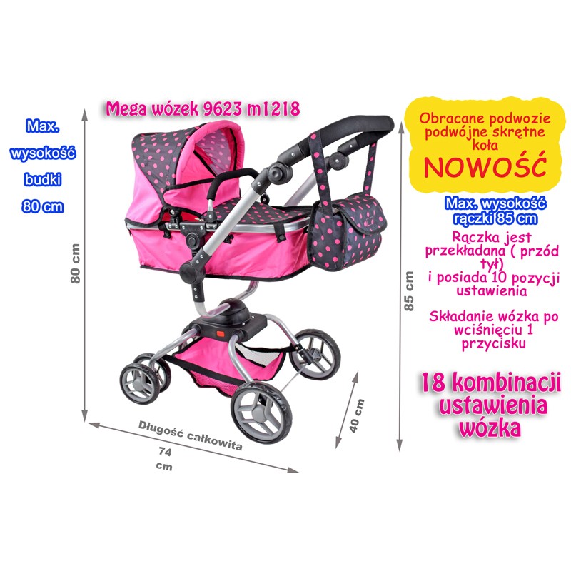 Model z regulowaną wysokością rączki (10 pozycji - nowość), może być wózkiem głębokim, spacerowym.