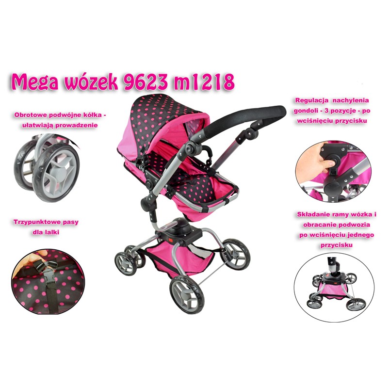 Posiada składaną budkę, blokadę przed złożeniem podczas jazdy i zabawy wózeczkiem, wózek składa się całkowicie jak prawdziwy wózeczek - jest bardzo wygodny do przechowywania i transportowania.