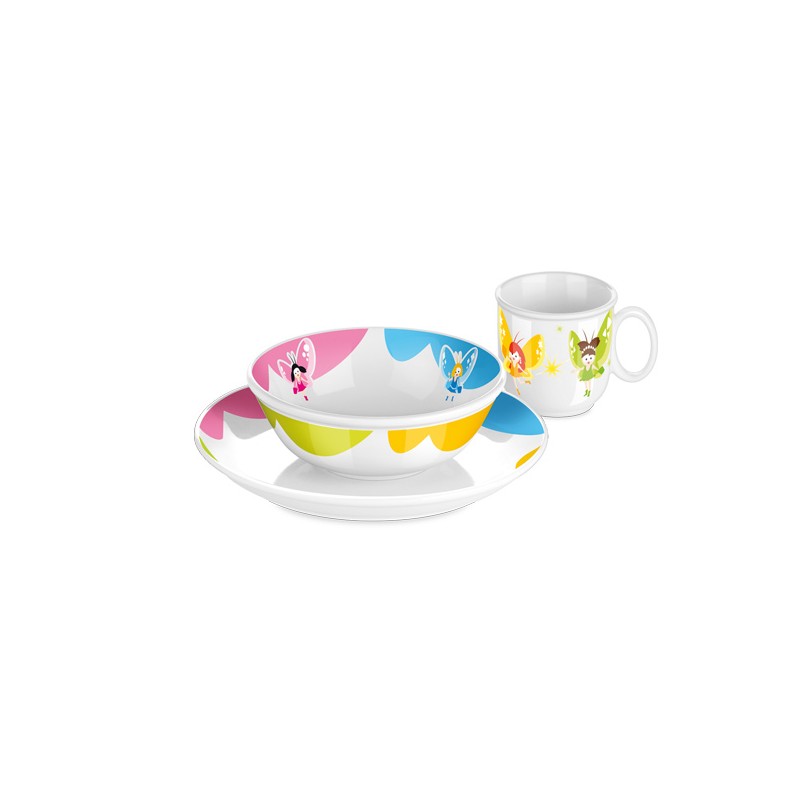 Komplet stołowy dla dzieci został wykonany z wysokiej jakości porcelany, z motywem dziecięcym.