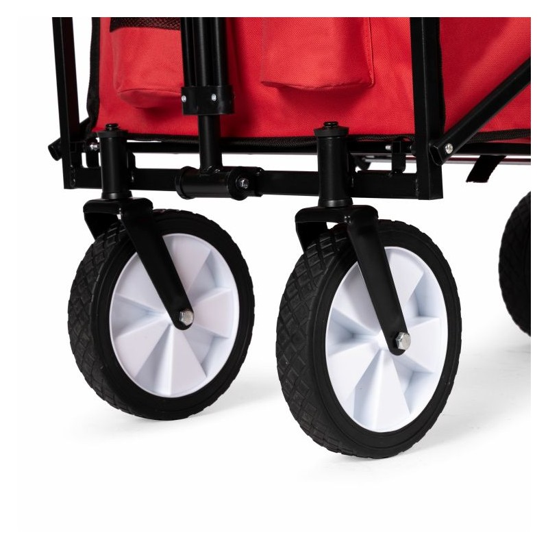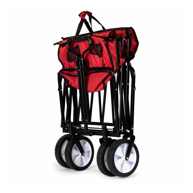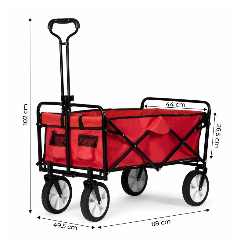 Wielozadaniowy wózek doskonale sprawdzi się w ogrodzie, czy na wakacjach. Umożliwia transportowanie wszelkiego rodzaju niewielkiego ładunku. Dzięki skrętnym kołom kierowanie i manewrowanie wózkiem jest niezwykle proste. Wygodna rączka, z miękką, antypoślizgową nakładką dodatkowo podniesie komfort użytkowania. Największą zaletą jest jego kompaktowość. Składany i rozkładany w bardzo prosty sposób, z użyciem jednej ręki. Po złożeniu bez problemu zapakujemy go do bagażnika samochodu lub przechowamy na niewielkiej płaszczyźnie. Dodatkowo wózek został wyposażony w łatwo dostępne uchwyty do jego przenoszenia w pozycji złożonej.