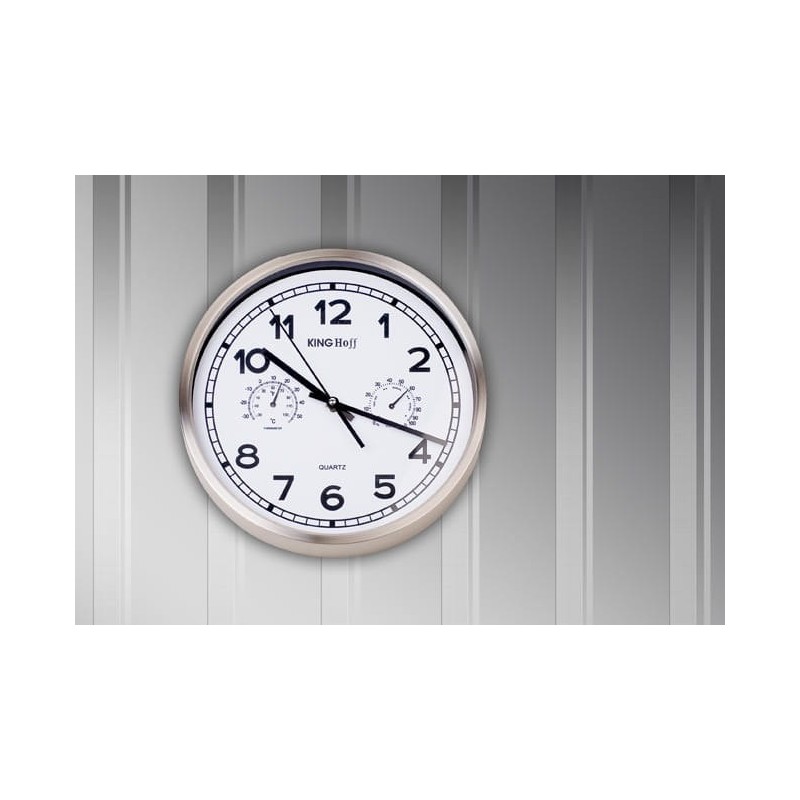 Zegar ścienny O30 cm KINGHOFF z wilgotnosciomierzem i termometrem.