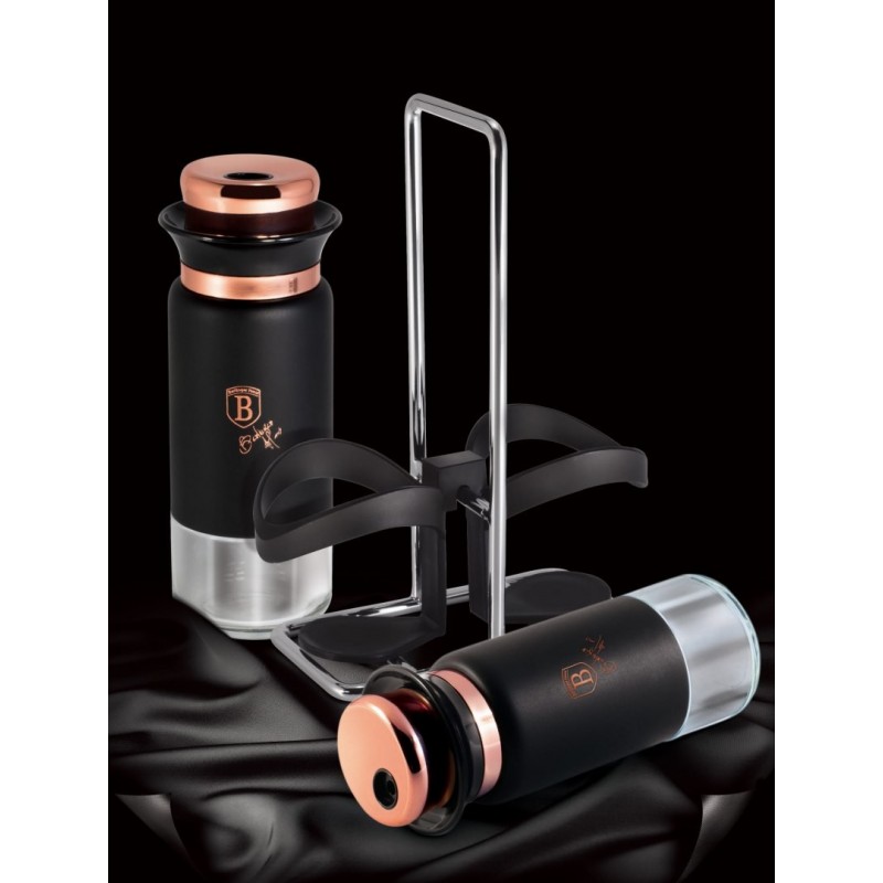 W skład zestawu wchodzą 2 pojemniki o pojemności 120ml oraz stojak.