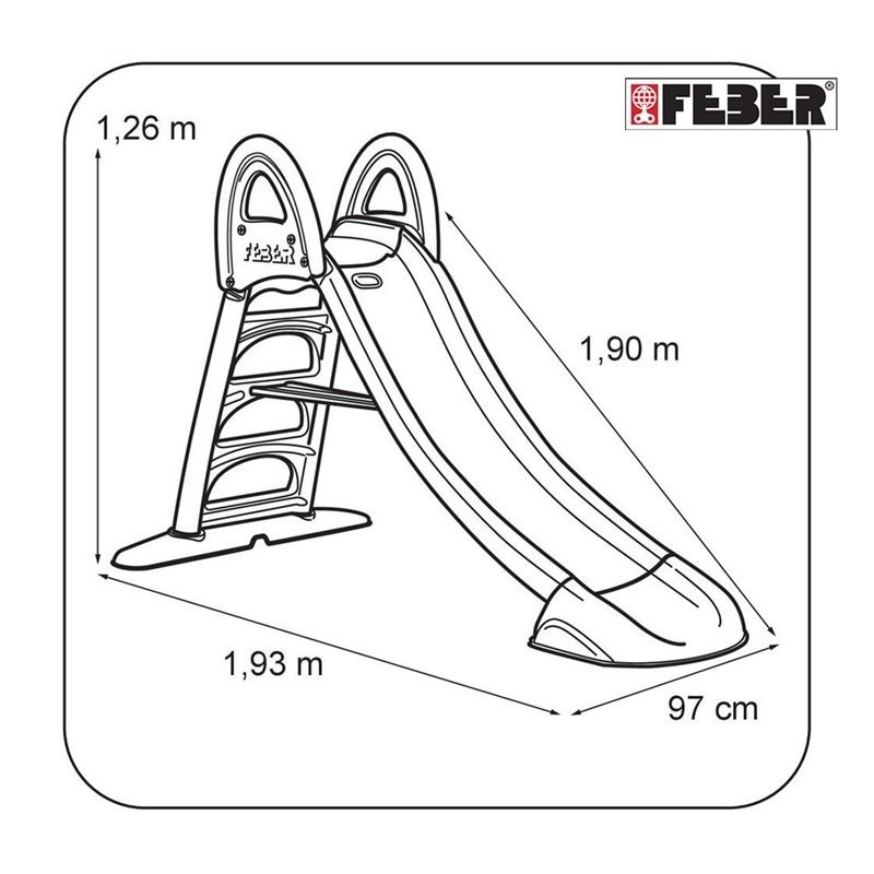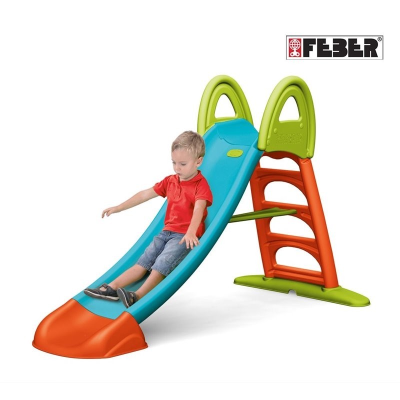 Kolorowa zjeżdżalnia hiszpańskiej marki Feber dla dzieci od 3 roku życia życia. Ślizg długości 190 cm, wygodna drabinka z uchwytami do wejścia dla dziecka zapewni bezpieczeństwo. Możliwość podłączenia węża ogrodowego do ślizgu i już mamy wodny plac zabaw idealny w upalne dni. Produkt wykonany z wytrzymałego i odpornego plastiku pokrytego powłoką ANTI-UV, która chroni przed blaknięciem.