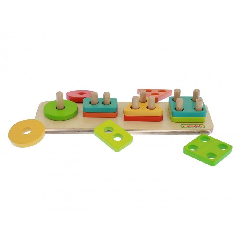 Zabawka sensoryczna marki MASTERKIDZ dla dzieci, sorter kształtów to świetna drewniana zabawka edukacyjna, która świetnie sprawdzi się w rękach każdego dziecka. Ma na celu rozwinięcie umiejętności motorycznych, oraz zdolności logicznego myślenia. Dziecko, bawiąc się taką zabawką, musi użyć swojego umysłu, by dopasować klocki do pasujących kołeczków. Zadanie wydaje się proste, ale we wczesnej edukacji takie zabawy mają ogromne znaczenie.